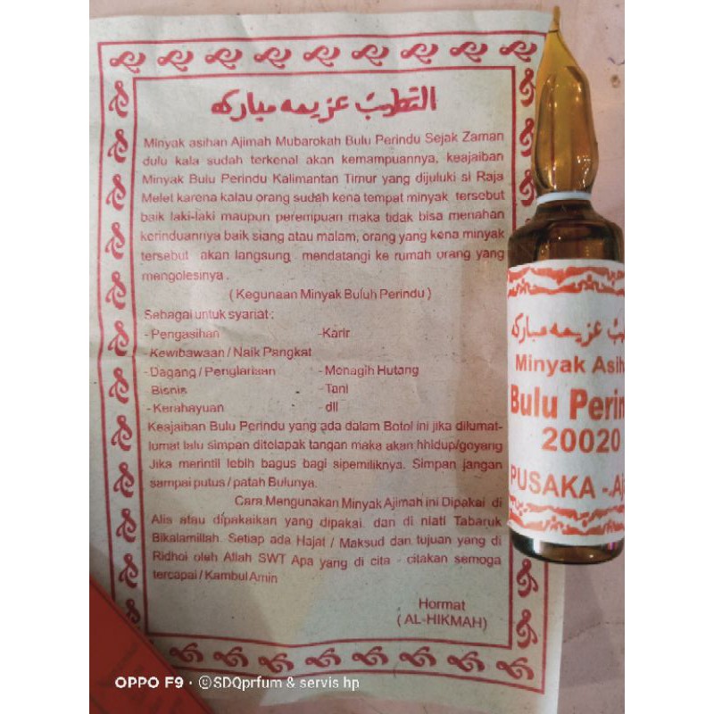 Asal usul bulu perindu bagi lebih dari satu orang melacak jodoh adalah hal yang luar biasa sulit. Bukanmenganiayai orang lain atau niat tidak baik. Namun dari mekkah masih berupa benih atau dasarnya saja baru setelah itu ada proses pengolahan di indonesia dengan tidak menghilangkan keasliannya tetap menjadikan benih minyak hajar aswad ini sebagai bahan. +6285 32 6666 500 pin bbm : Kalau dari kategori minyak ritual, ada minyak jafaron, minyak misik dan minyak apel jin yang juga sudah lama tersohor. Mahar bulu perindu ritual bulan purnama rp. Misalnya kamar mandi, wc, ataupun toilet. Warna dari bulu perindu ini adalah coklat kehitam2an dg bentuk dasar sama dengan bulu alis mata, yaitu pada ujungnya lebih kecil jika dibandingkan dengan batannya. Antara pantang larang apabilamemakai minyak buluh perindu ini adalah: Untuk penggunaan dari minyak pengasihan bulu perindu karya magic padepokan purbokusumo anda tinggal oleskan minyak bulu perindu di kedua jempol tangan, baca mantra diatas 7 kali dan oleskan minyak dijempol tersebut ke kedua alis kita, dan anda tidak harus puasa atau ritual yang sangat melelahkan. Pesugihan buto ijo adapun tuah alam yang bermanfaat sebagai : Banyak orang mencari apa minyak wangi yang. Dan saya tidak menggunakan pos sama sekali.