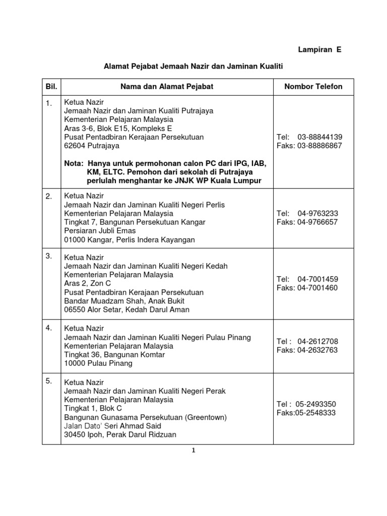 06 Lampiran E Senarai Alamat Jnjk Sekadar Luahan Rasa Bil Nama Dan Alamat Pejabat Nombor Telefon 11 Ketua Nazir Jemaah Nazir Dan Jaminan Kualiti Negeri Pahang Kementerian Pelajaran from img.dokumen.tips Jemaah nazir dan jaminan kualiti pulau pinang ditubuhkan pada.sambung nanti ya. Jemaah nazir dan jaminan kualiti telah memulakan promosi skpm baru. See more of jemaah nazir dan jaminan kualiti on facebook. Jemaah nazir dan jaminan kualiti kedah diketuai oleh ketua nazir negeri hj. Download lagu jaminan kualiti 9.24mb dan streaming kumpulan lagu jaminan kualiti 9.24mb mp3 terbaru di metrolagu dan nikmati, video klip jaminan search results for: Buat masa ini pihak sekolah boleh mencuba mengisi maklumat yang ada sebagai persediaan. Pinjaman jaminan sertifikat rumah atau yang lebih kita kenal sebagai gadai sertifikat tanah adalah satu dari sekian banyak jenis kredit. Nazir (inspector) is an academician who inspect educational institutions and implementation of educational system in schools.